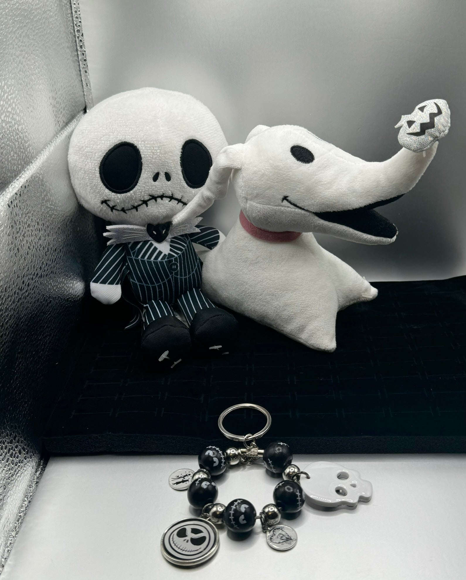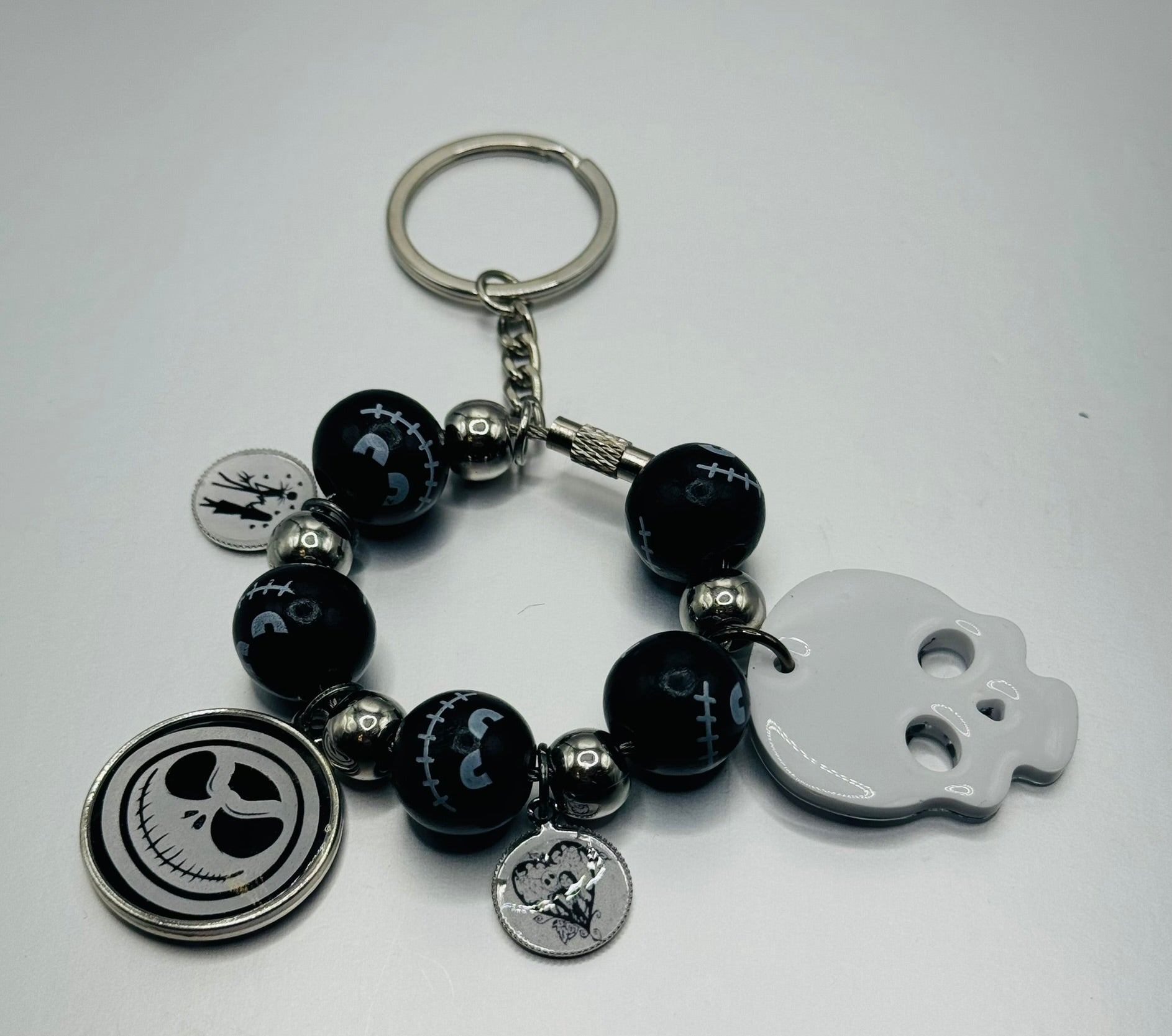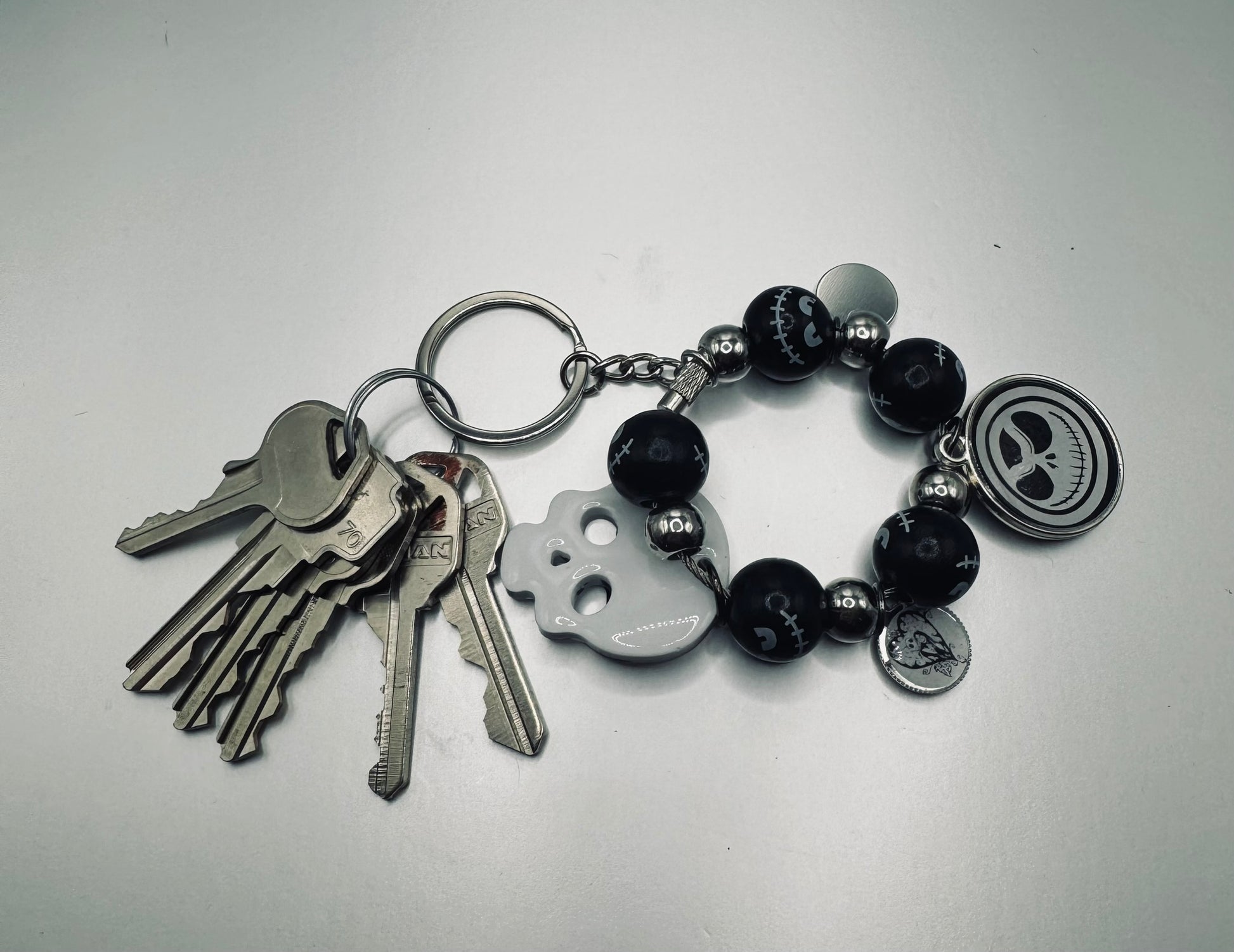 The skeletons are coming out! No worries, you have the king with you, the Pumpkin King! Rule over your spooky kingdom with the Pumpkin King Keychain! Featuring bold black and silver beads, eerie skull accents, and a pumpkin-faced charm fit for royalty, this keychain brings the perfect mix of gothic and Halloween vibes. Whether you're a fan of the macabre or just love celebrating the spooky season, this keychain is the perfect way to add a dash of haunted elegance to your keys, bag, or lanyard. Let the Pumpkin King accompany you through every dark and stylish adventure!